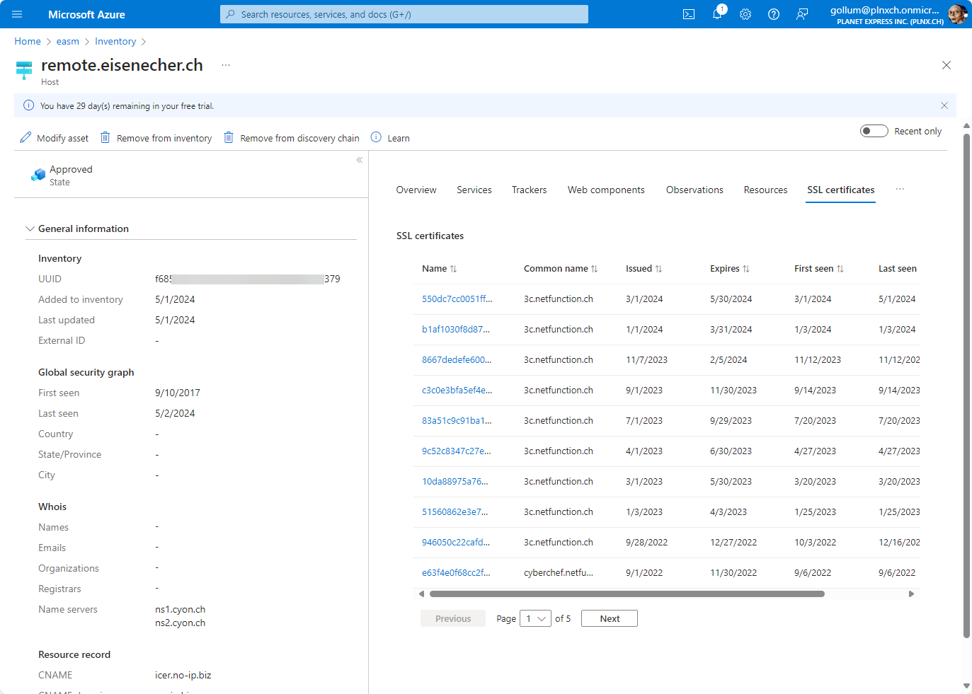After the first review of the observations the results are mixed. As detailed above EASM shows information about your external surface and combines it with historic data so you see the development of your external surface over time. On the other hand you also saw that EASM complained about expired certificates which are already replaced. With that the supplied information has only a limited value.
